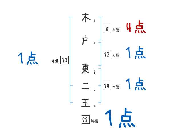 木戸東二王さんの画数の鑑定結果