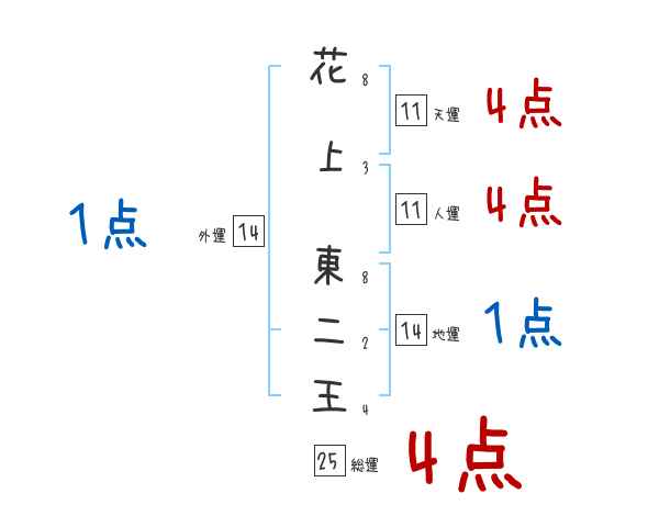 花上東二王さんの画数の鑑定結果