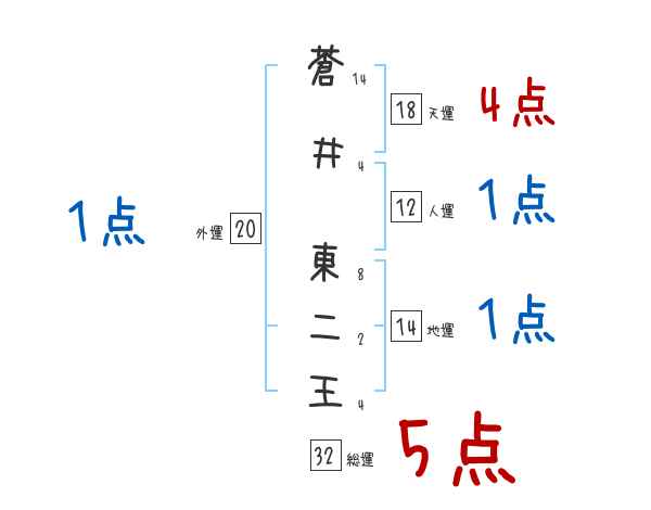 蒼井東二王さんの画数の鑑定結果