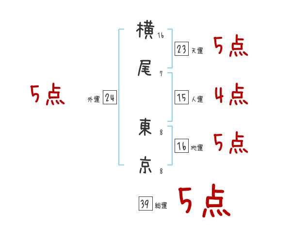 横尾東京さんの画数の鑑定結果