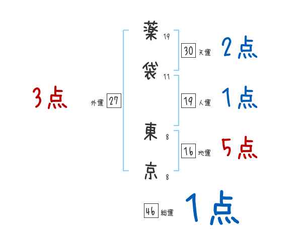 薬袋東京さんの画数の鑑定結果
