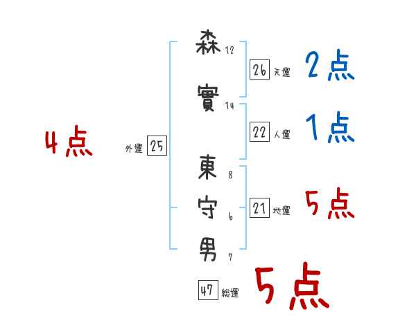 森實東守男さんの画数の鑑定結果