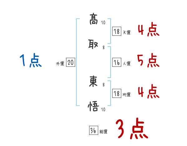 髙取東悟さんの画数の鑑定結果