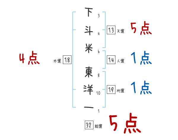 総運![]() | 下斗米東洋一さんの総運は32画の5つ星!柔軟性があり成功する。チャンスが多く金運が良い。 あなたの人生を表す1番重要な運勢です。生涯を通じて影響する総合運となり、主に50歳以降の晩年期に影響を及ぼします。 |