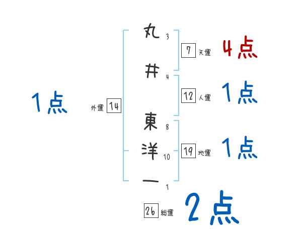 天運![]() | 丸井東洋一さんの天運は7画の4つ星!強い意志や信念を持ち独立心が強い。自立する。 家系が持つ宿命的な運勢を表します。祖先から受け継いだ苗字ですので自分の力が及びません。家柄を象徴します。 |