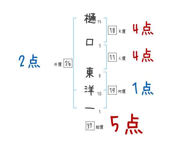 外運![]() | 樋口東洋一さんの外運は26画の2つ星!波瀾万丈かも。信頼できる人を大事にしましょう。 生活面を象徴する運勢です。外部から受ける影響力を表し、結婚運、家庭運や職場、環境への順応性を表します。 |