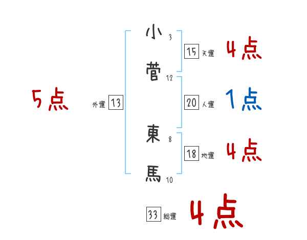 小菅東馬さんの画数の鑑定結果