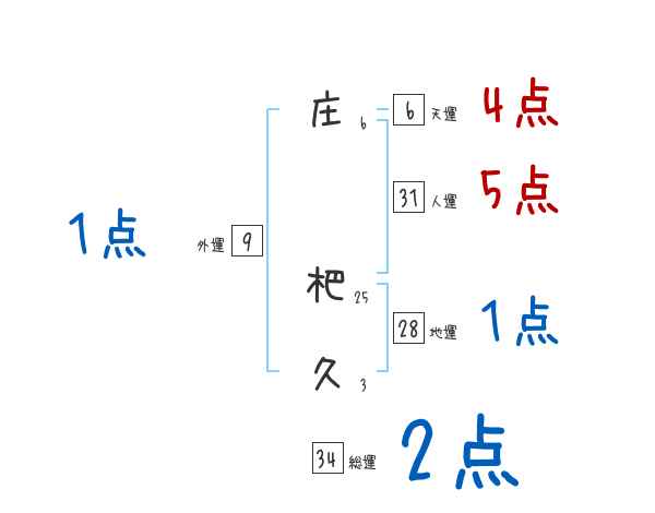 天運![]() | 庄杷久さんの天運は6画の4つ星!慎重な努力家で信頼を得る。誠実な精神で向上心に優れる。 家系が持つ宿命的な運勢を表します。祖先から受け継いだ苗字ですので自分の力が及びません。家柄を象徴します。 |