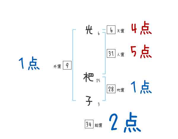 天運![]() | 光杷子さんの天運は6画の4つ星!慎重な努力家で信頼を得る。誠実な精神で向上心に優れる。 家系が持つ宿命的な運勢を表します。祖先から受け継いだ苗字ですので自分の力が及びません。家柄を象徴します。 |