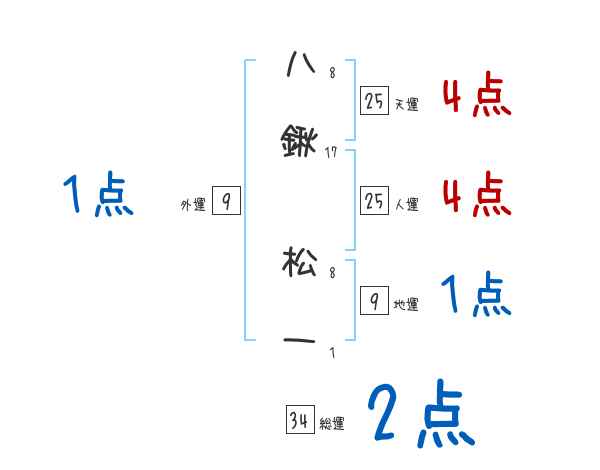 八鍬松一さんの画数の鑑定結果