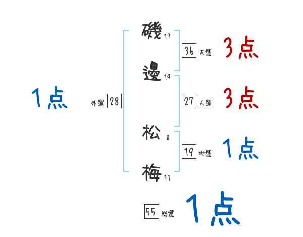 磯邊松梅さんの画数の鑑定結果