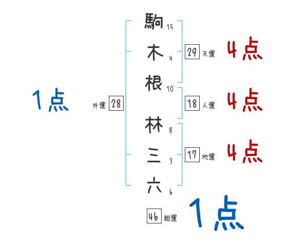 外運![]() | 駒木根林三六さんの外運は28画の1つ星!家庭環境に注意。スポーツで活躍できる能力があるかも。 生活面を象徴する運勢です。外部から受ける影響力を表し、結婚運、家庭運や職場、環境への順応性を表します。 |