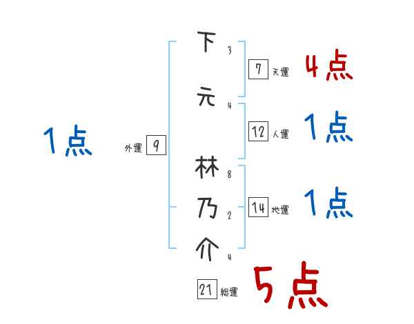 天運![]() | 下元林乃介さんの天運は7画の4つ星!強い意志や信念を持ち独立心が強い。自立する。 家系が持つ宿命的な運勢を表します。祖先から受け継いだ苗字ですので自分の力が及びません。家柄を象徴します。 |