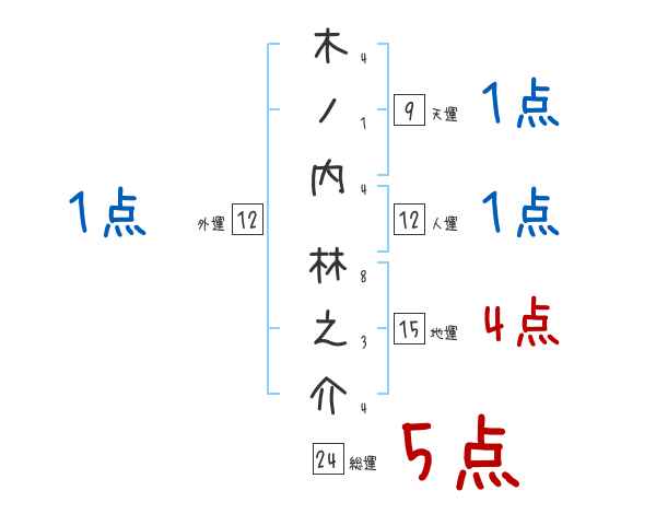 天運![]() | 木ノ内林之介さんの天運は9画の1つ星!消極的で才能を発揮することが苦手なことも。周りの意見に耳を傾けましょう。 家系が持つ宿命的な運勢を表します。祖先から受け継いだ苗字ですので自分の力が及びません。家柄を象徴します。 |