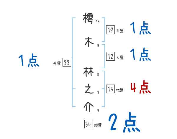 天運![]() | 樗木林之介さんの天運は19画の1つ星!優れた才能を持ちますが、協調性が足りないことも。周りの人と協力する事を意識しましょう。 家系が持つ宿命的な運勢を表します。祖先から受け継いだ苗字ですので自分の力が及びません。家柄を象徴します。 |