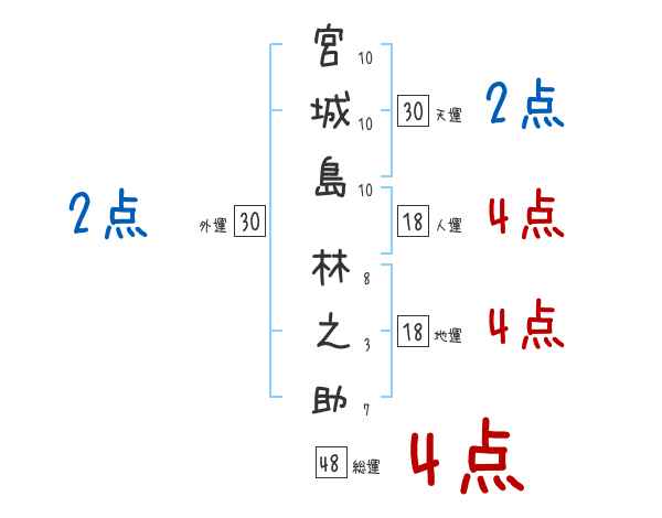 宮城島林之助さんの画数の鑑定結果