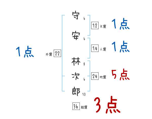総運![]() | 守安林次郎さんの総運は36画の3つ星!先見性が豊かです。多少神経質で苦労することも。 あなたの人生を表す1番重要な運勢です。生涯を通じて影響する総合運となり、主に50歳以降の晩年期に影響を及ぼします。 |