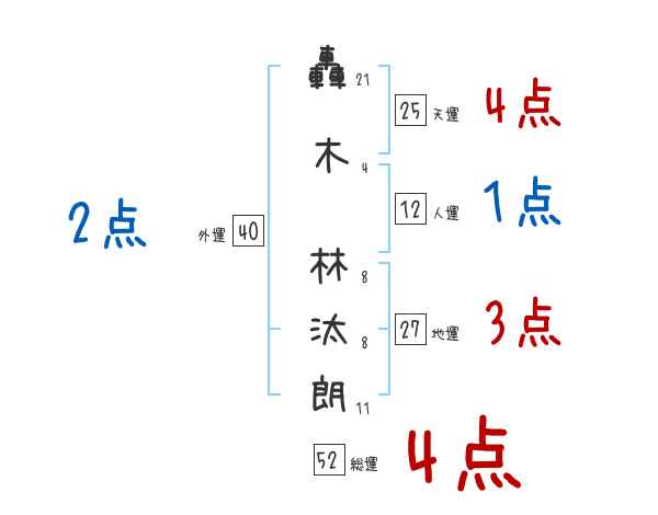 轟木林汰朗さんの画数の鑑定結果