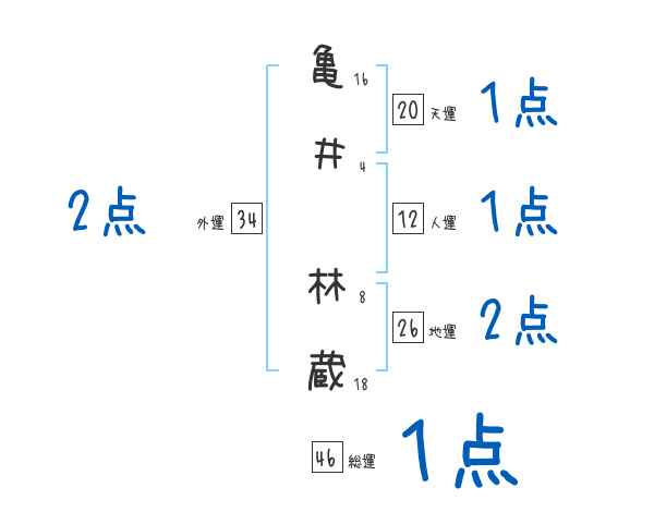 亀井林蔵さんの画数の鑑定結果