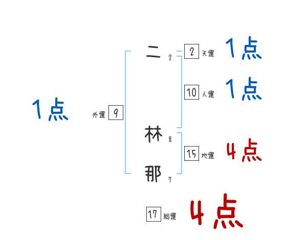 二林那さんの画数の鑑定結果