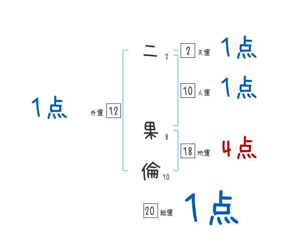 総運![]() | 二果倫さんの総運は20画の1つ星!社交が苦手。人とは違った才能があり波乱万丈な人生かも。 あなたの人生を表す1番重要な運勢です。生涯を通じて影響する総合運となり、主に50歳以降の晩年期に影響を及ぼします。 |