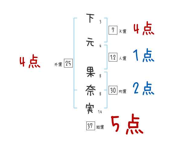 天運![]() | 下元果奈実さんの天運は7画の4つ星!強い意志や信念を持ち独立心が強い。自立する。 家系が持つ宿命的な運勢を表します。祖先から受け継いだ苗字ですので自分の力が及びません。家柄を象徴します。 |
