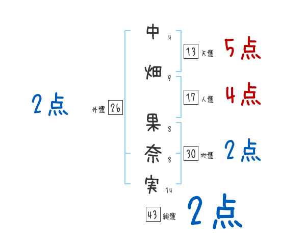 中畑果奈実さんの画数の鑑定結果