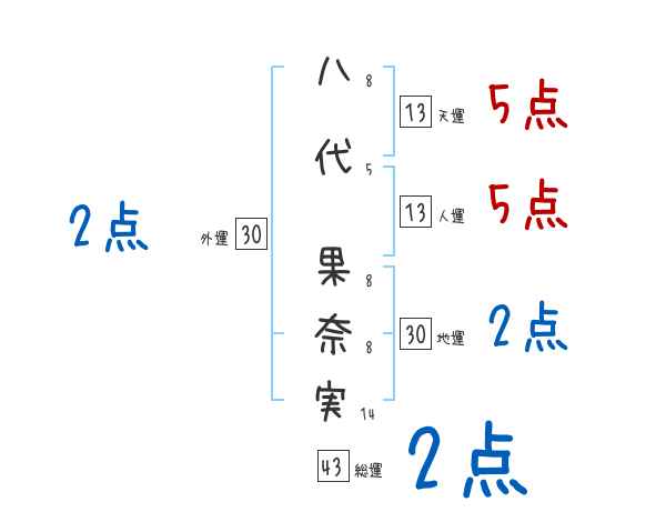 八代果奈実さんの画数の鑑定結果
