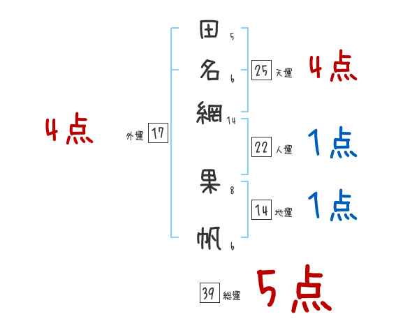田名網果帆さんの画数の鑑定結果