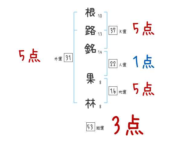 根路銘果林さんの画数の鑑定結果