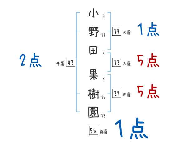 小野田果樹園さんの画数の鑑定結果