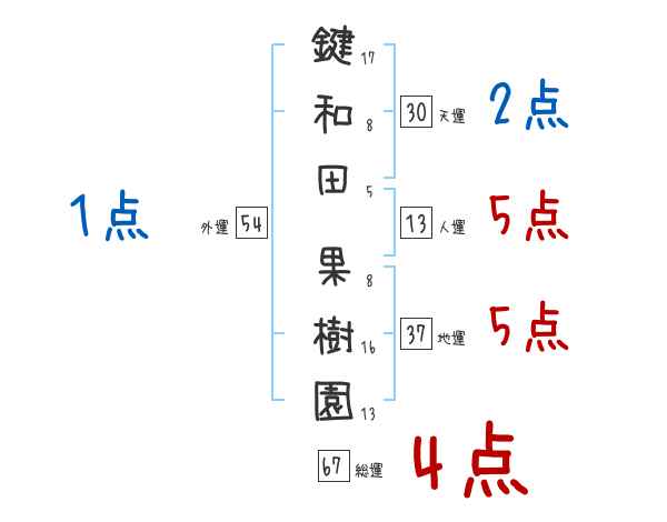 鍵和田果樹園さんの画数の鑑定結果