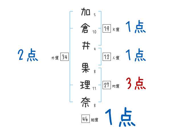 外運![]() | 加倉井果理奈さんの外運は34画の2つ星!独創性に優れるが、自尊心が強く災難に注意しましょう。 生活面を象徴する運勢です。外部から受ける影響力を表し、結婚運、家庭運や職場、環境への順応性を表します。 |