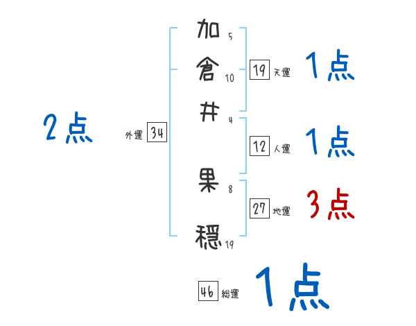 外運![]() | 加倉井果穏さんの外運は34画の2つ星!独創性に優れるが、自尊心が強く災難に注意しましょう。 生活面を象徴する運勢です。外部から受ける影響力を表し、結婚運、家庭運や職場、環境への順応性を表します。 |