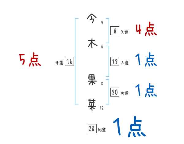 今木果菜さんの画数の鑑定結果