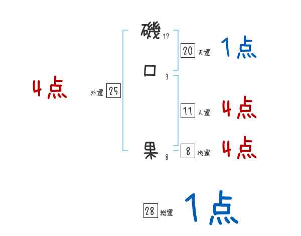 総運![]() | 磯口果さんの総運は28画の1つ星!家庭環境に注意。スポーツで活躍できる能力があるかも。 あなたの人生を表す1番重要な運勢です。生涯を通じて影響する総合運となり、主に50歳以降の晩年期に影響を及ぼします。 |