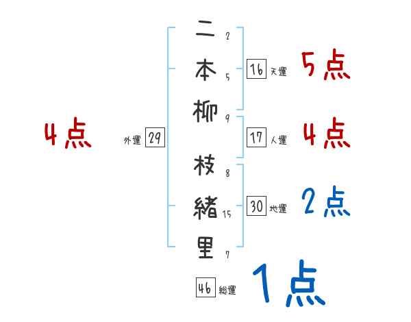 二本柳枝緒里さんの画数の鑑定結果