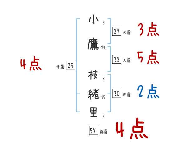 小鷹枝緒里さんの画数の鑑定結果