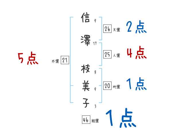 天運![]() | 信澤枝美子さんの天運は26画の2つ星!波瀾万丈かも。信頼できる人を大事にしましょう。 家系が持つ宿命的な運勢を表します。祖先から受け継いだ苗字ですので自分の力が及びません。家柄を象徴します。 |
