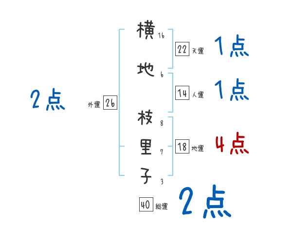 外運![]() | 横地枝里子さんの外運は26画の2つ星!波瀾万丈かも。信頼できる人を大事にしましょう。 生活面を象徴する運勢です。外部から受ける影響力を表し、結婚運、家庭運や職場、環境への順応性を表します。 |
