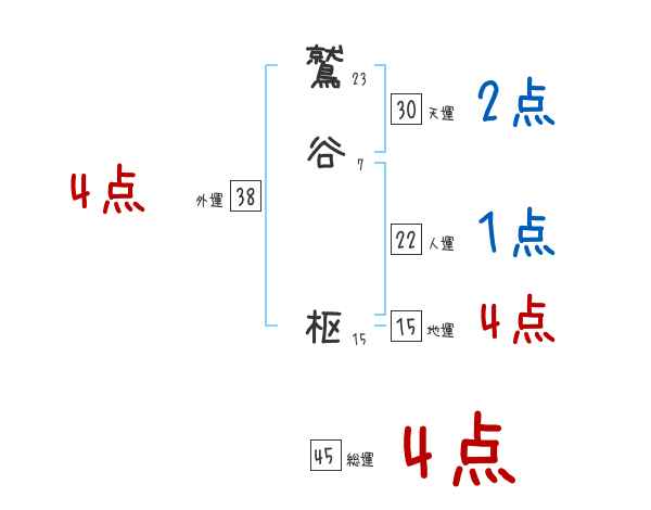天運![]() | 鷲谷枢さんの天運は30画の2つ星!浮き沈みの激しさに注意しましょう。 家系が持つ宿命的な運勢を表します。祖先から受け継いだ苗字ですので自分の力が及びません。家柄を象徴します。 |