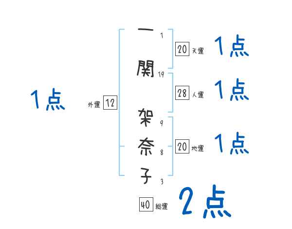 人運![]() | 一関架奈子さんの人運は28画の1つ星!家庭環境に注意。スポーツで活躍できる能力があるかも。 性格や才能などを表す2番目に重要な運勢です。人間関係や協調性、社会的な成功に影響します。主に20歳から50歳ぐらいまでの中年期の運勢を表します。 |
