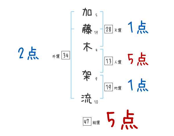 総運![]() | 加藤木架流さんの総運は47画の5つ星!実力が開花し発展する円満な人生。財に恵まれる。 あなたの人生を表す1番重要な運勢です。生涯を通じて影響する総合運となり、主に50歳以降の晩年期に影響を及ぼします。 |
