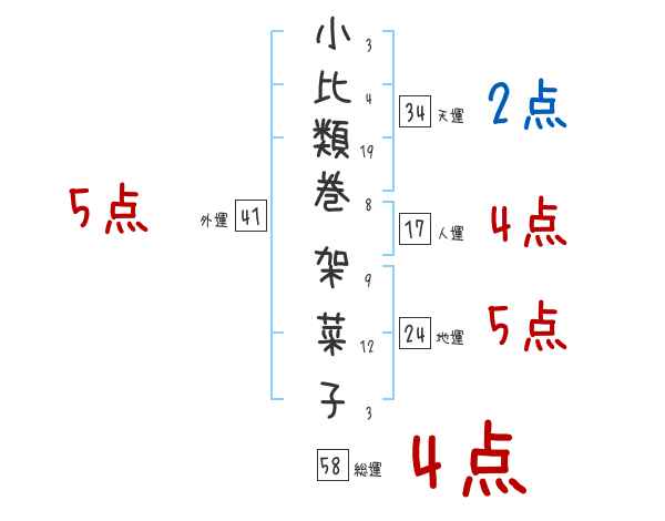 小比類巻架菜子さんの画数の鑑定結果
