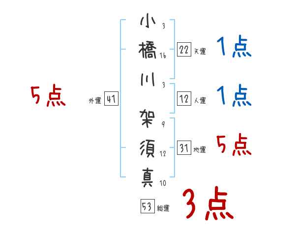 小橋川架須真さんの画数の鑑定結果