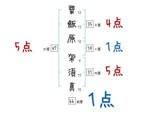 粟飯原架須真さんの画数の鑑定結果