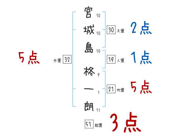 宮城島柊一朗さんの画数の鑑定結果