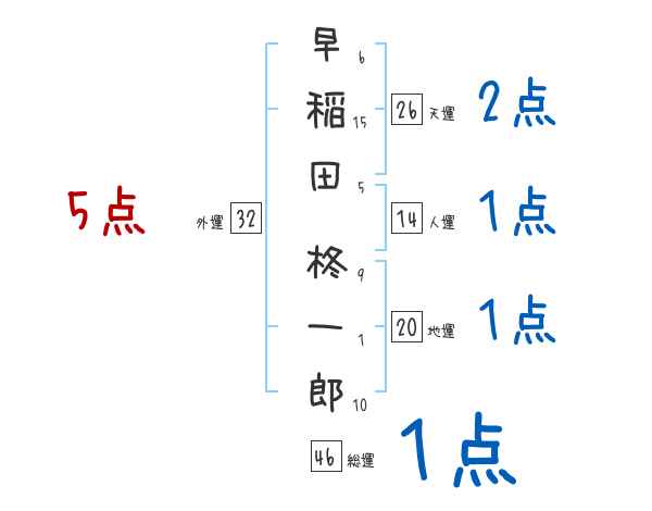 外運![]() | 早稲田柊一郎さんの外運は32画の5つ星!柔軟性があり成功する。チャンスが多く金運が良い。 生活面を象徴する運勢です。外部から受ける影響力を表し、結婚運、家庭運や職場、環境への順応性を表します。 |