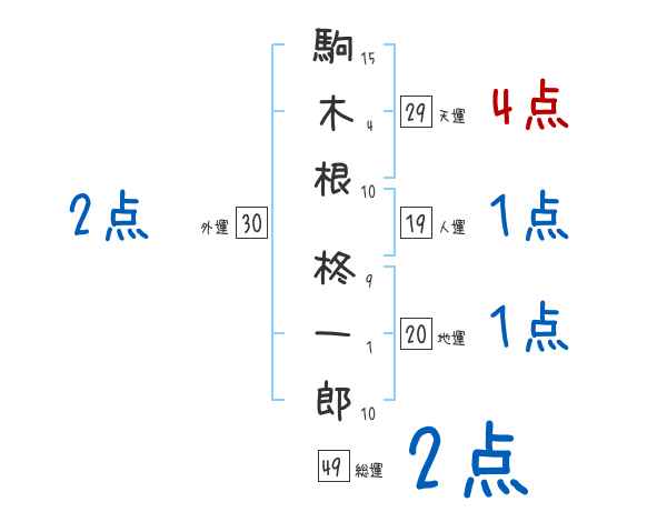 天運![]() | 駒木根柊一郎さんの天運は29画の4つ星!完全主義で才能がある。厳格な心の持ち主。 家系が持つ宿命的な運勢を表します。祖先から受け継いだ苗字ですので自分の力が及びません。家柄を象徴します。 |