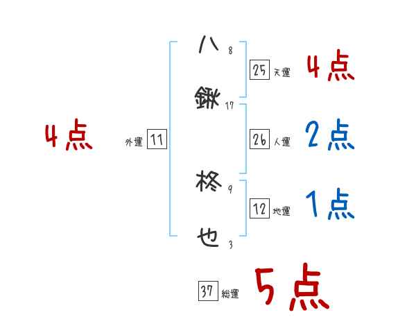 八鍬柊也さんの画数の鑑定結果